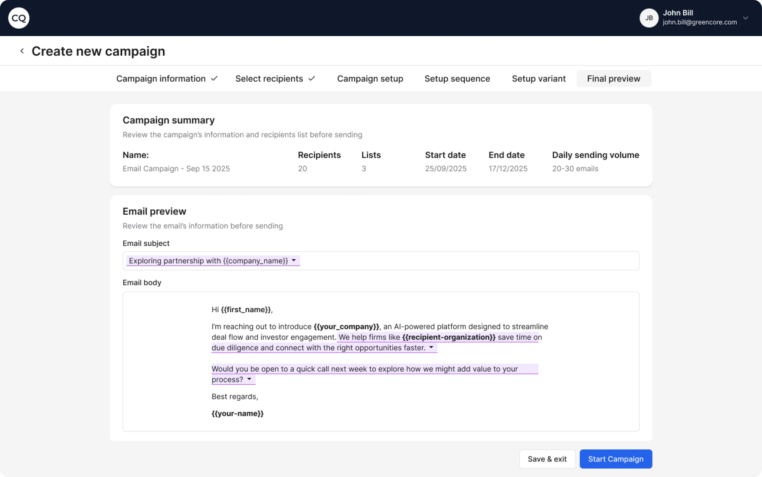 Create targeted email campaigns that reach investors at scale. Our AI generates unique variations of each email so you avoid spam filters and protect your domain.